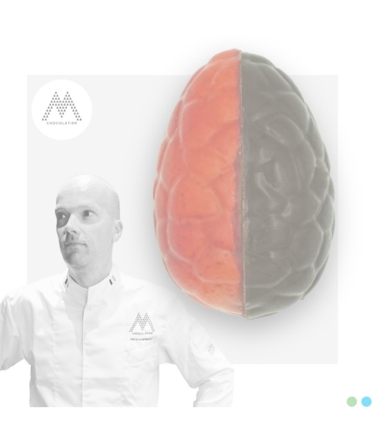Ce magnifique oeuf au goût de framboise en surprendra plus d'un! Une signature de David Maenhout.