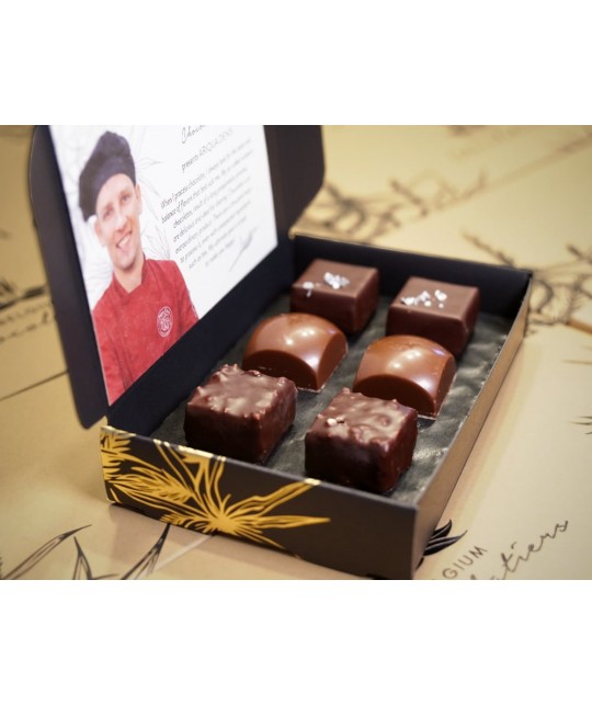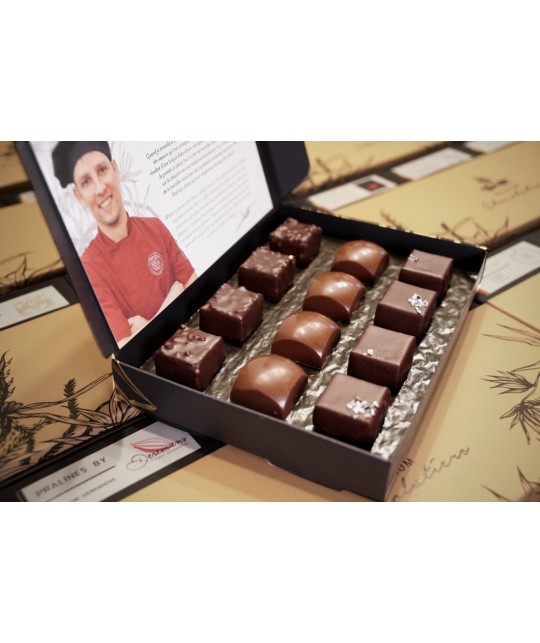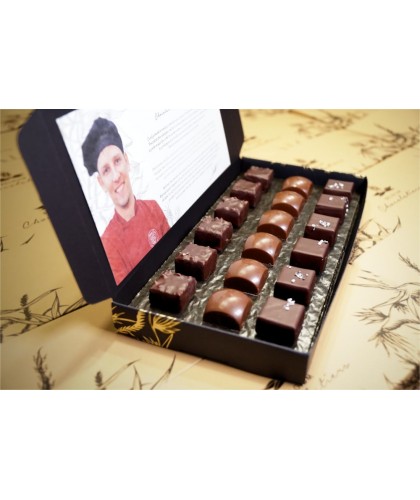 Les pralines proposées dans ce coffret sont le résultat d'une longue élaboration de recettes originales et complexes et de la recherche d'un parfait équilibre entre le chocolat et les épices que le chocolatier a sélectionnés avec soin pour votre plaisir.