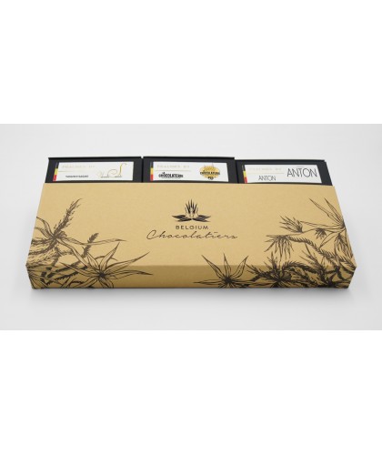 Deze doos brengt drie gepassioneerde chocolatiers samen, elk met een eigen universum, maar allemaal gedreven door de zoektocht naar uitmuntendheid en zintuiglijk genot.