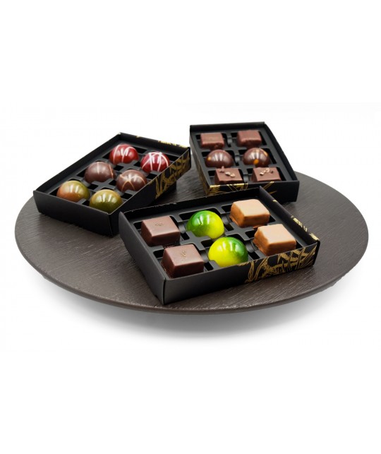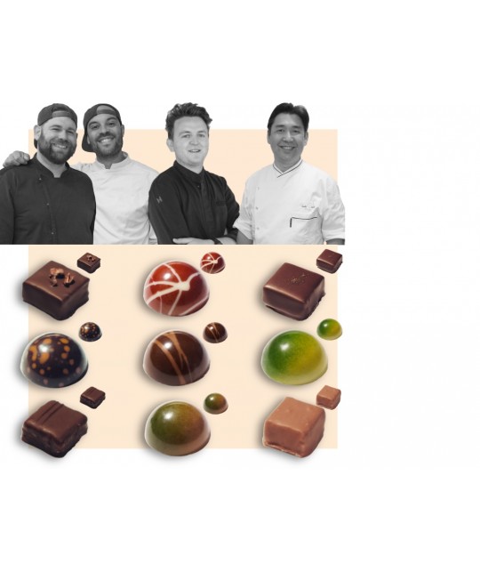 Deze doos brengt drie gepassioneerde chocolatiers samen, elk met een eigen universum, maar allemaal gedreven door de zoektocht naar uitmuntendheid en zintuiglijk genot.